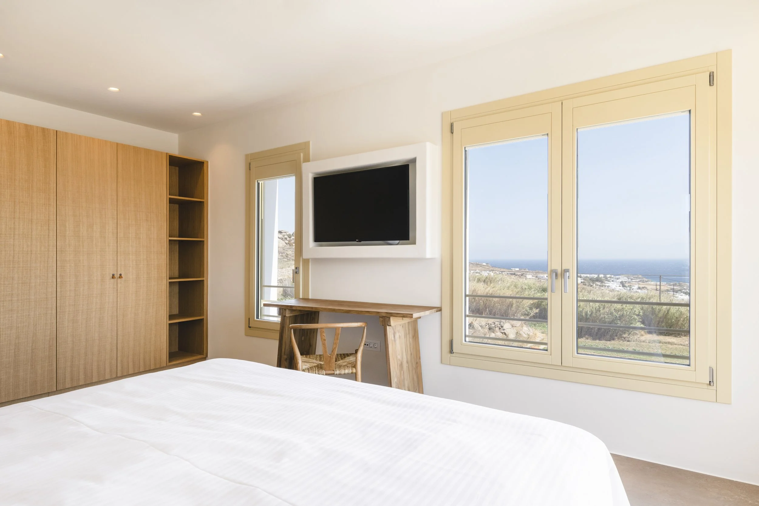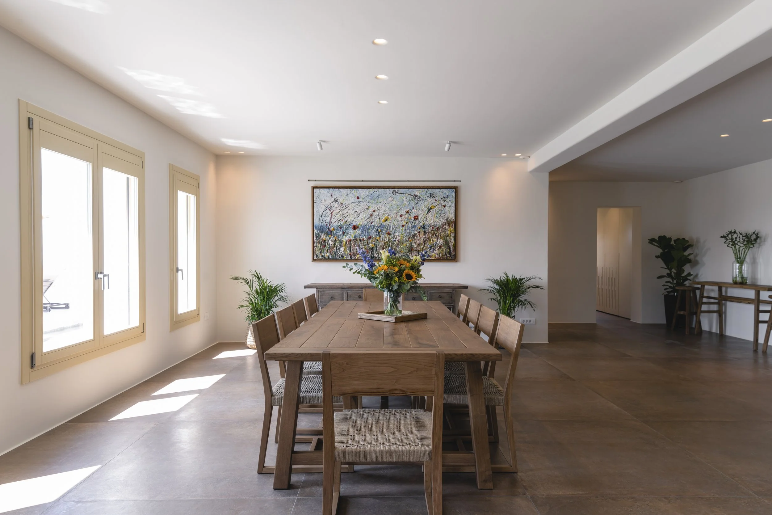 Discovering one by one all the interesting, elegant, and tastefully made corners of this modern, luxurious, and brand-new Mykonian house. A high-level team in the field of luxury home architecture supervised the creation of a unique holiday home that satisfies the tastes of its visitors with its modern construction, high-quality materials, and functionality.