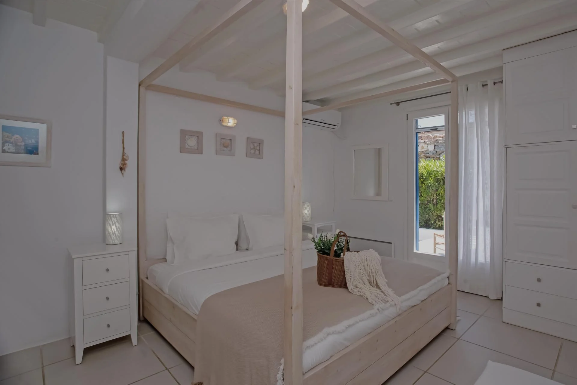- Room 4: Independent Guest House with ensuite bathroom, private balcony, double-size bed, A/C, and bath essentials.