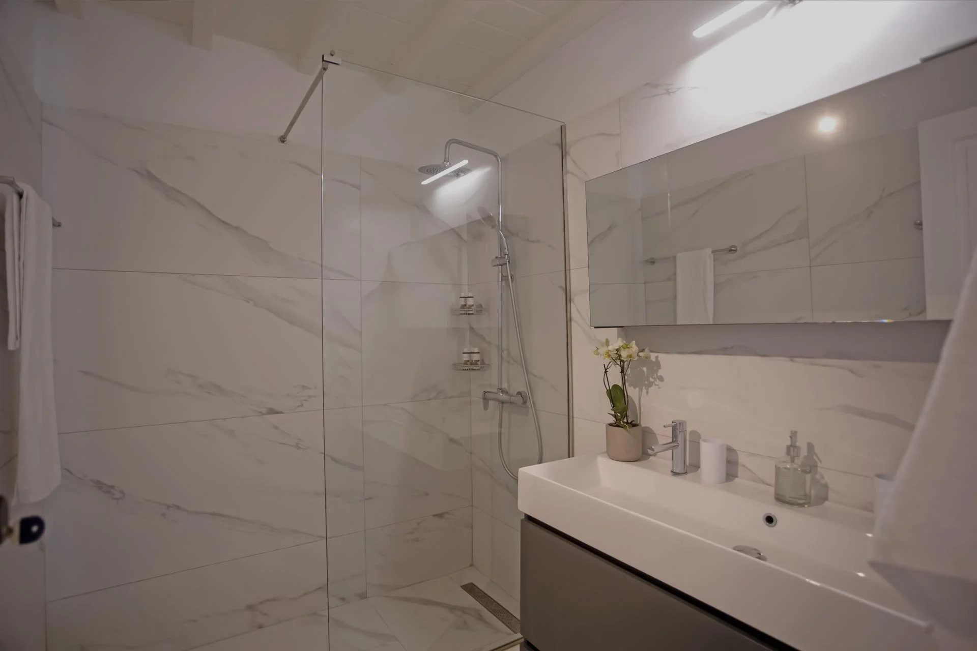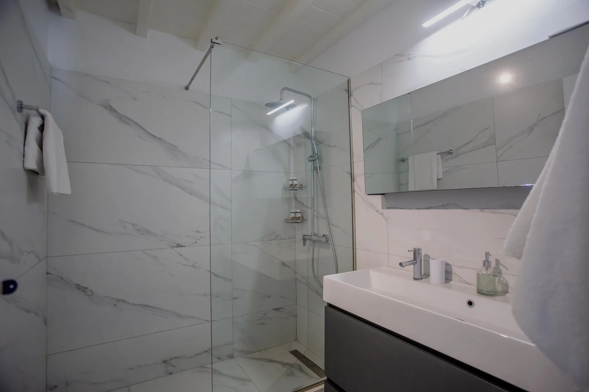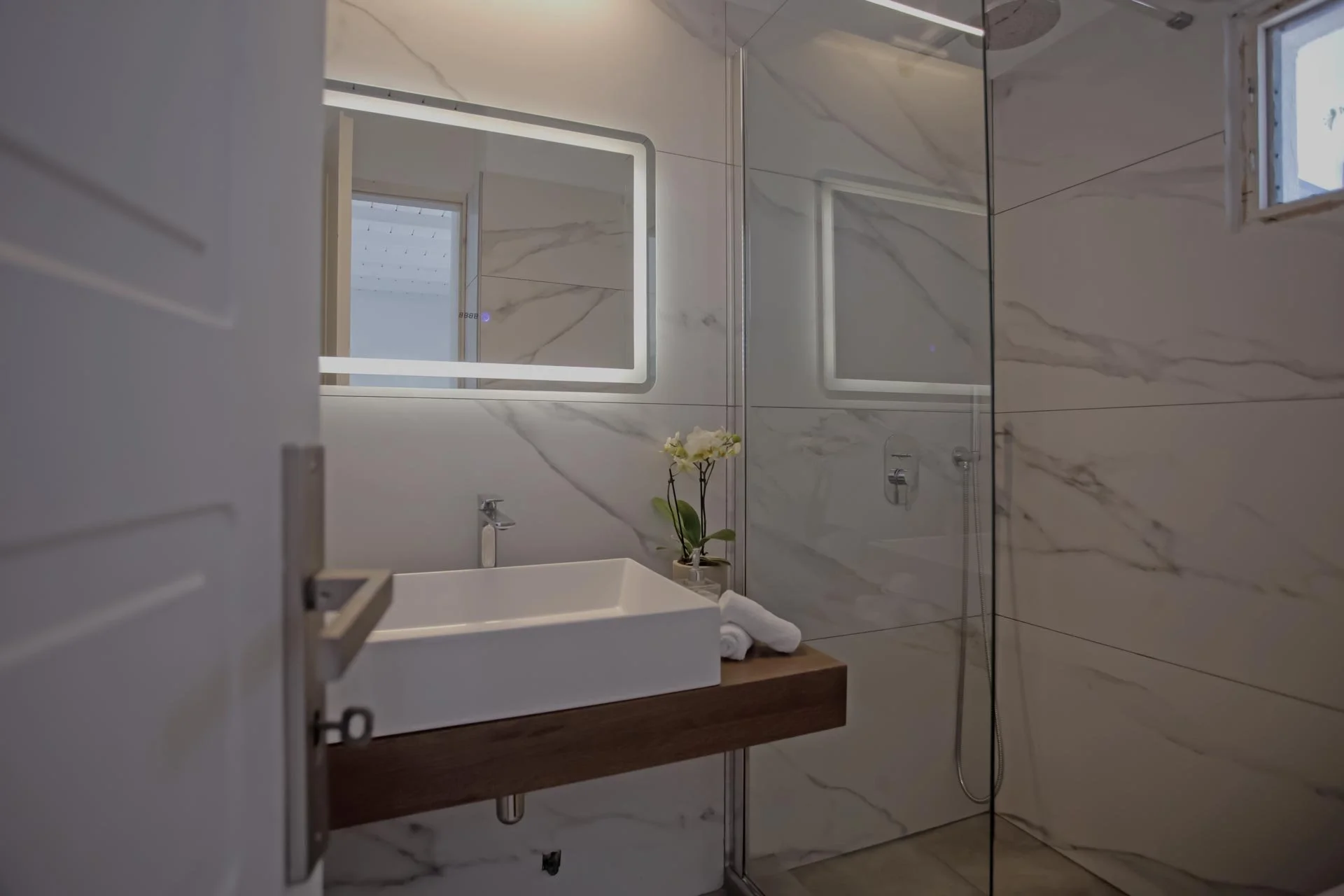 - Room 3: Double Room with shower, direct bathroom access, queen-size bed, and A/C.